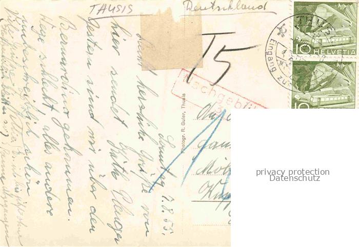 34144848 alte Postkarte Thusis GR Panorama postalisch gelaufen Erhaltung siehe scans [FriedD77] KatCode: 11470100315098