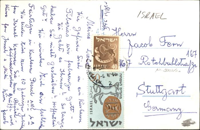 old postcard Tiberias [Handschriftlich] postalisch gelaufen