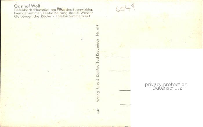 31728620 Tiefenbach Hunsrueck Gasthof Wolf postalisch nicht gelaufen Erhaltung siehe scans KatCode: 11110007140150