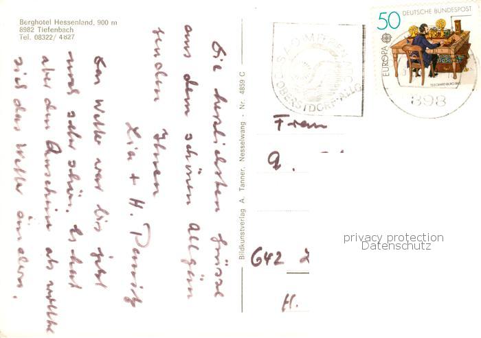 73845254 alte Postkarte Tiefenbach Obermaiselstein Berghotel Hessenland postalisch gelaufen Erhaltung siehe scans [WerneD78] KatCode: 11110009780131