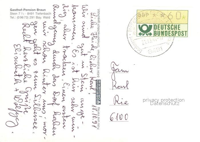 73544704 alte Postkarte Tiefenbach Oberpfalz Gasthof Pension Braun postalisch gelaufen Erhaltung siehe scans [WerneD78] KatCode: 11110009372163