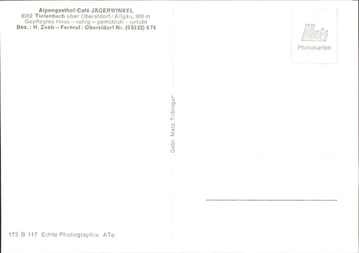 40807150 Tiefenbach Oberstdorf Allgäu Gasthof Cafe Jägerwinkel * KatCode 11110009780133