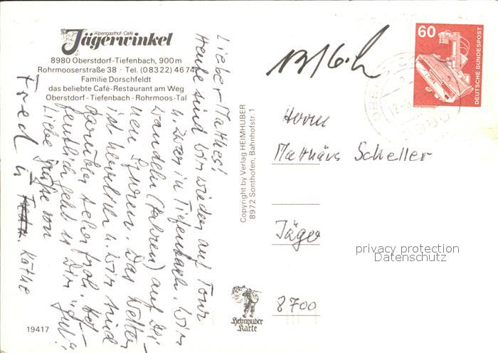 72257725 alte Postkarte Tiefenbach Oberstdorf Alpengasthof Cafe Jaegerwinkel postalisch gelaufen Erhaltung siehe scans KatCode: 11110009780133