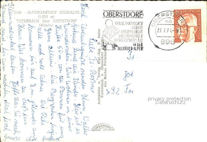 72535136 alte Postkarte Tiefenbach Oberstdorf Alpengasthof Sessealpe postalisch gelaufen Erhaltung siehe scans [WerneD78 kt117box] KatCode: 11110009780133
