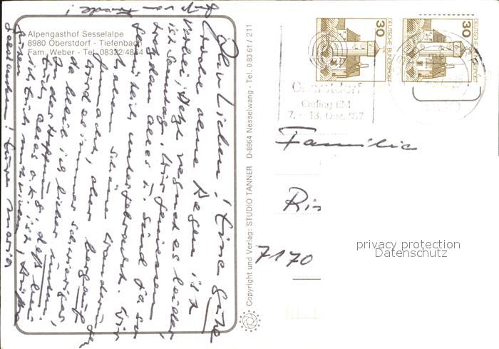 72544704 alte Postkarte Tiefenbach Oberstdorf Alpengasthof Sesselalpe postalisch gelaufen Erhaltung siehe scans [NatalD47 kv014box] KatCode: 11110009780133