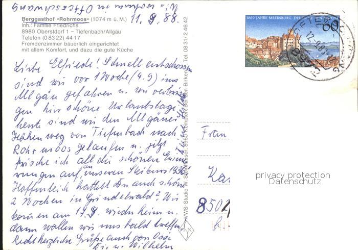 72465650 alte Postkarte Tiefenbach Oberstdorf Berggasthof Rohrmoos postalisch gelaufen Erhaltung siehe scans KatCode: 11110009780133