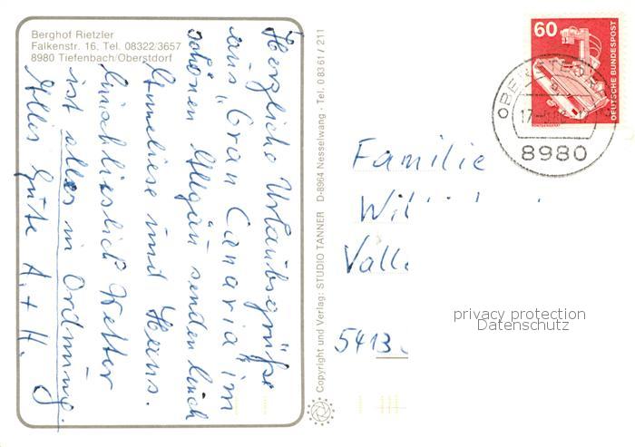 73858688 alte Postkarte Tiefenbach Oberstdorf Berghof Rietzler Wasserfall Panorama Kirche postalisch gelaufen Erhaltung siehe scans [WerneD78] KatCode: 11110009780133