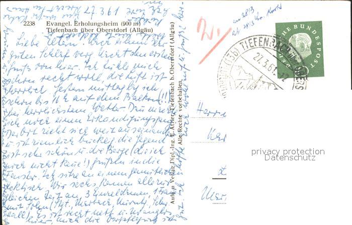 71919220 alte Postkarte Tiefenbach Oberstdorf Erholungsheim postalisch gelaufen Erhaltung siehe scans KatCode: 11110009780133