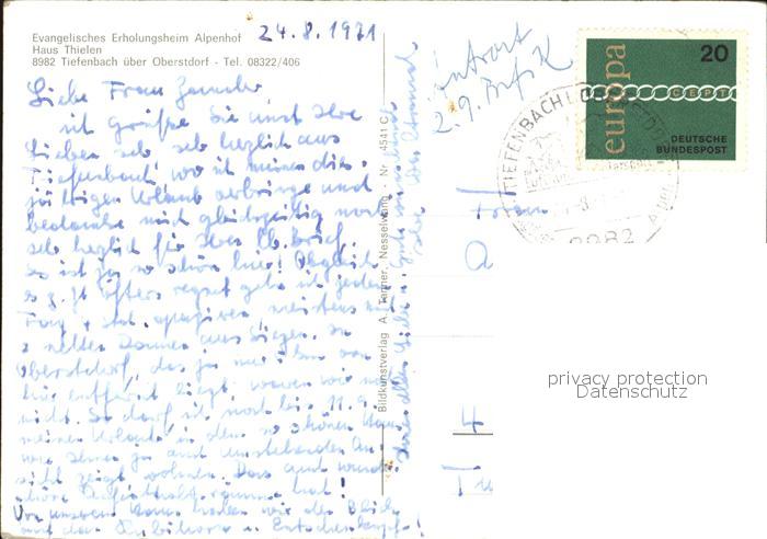 72529246 alte Postkarte Tiefenbach Oberstdorf Ev Erholungsheim Alpenhof Haus Thielen postalisch gelaufen Erhaltung siehe scans KatCode: 11110009780133