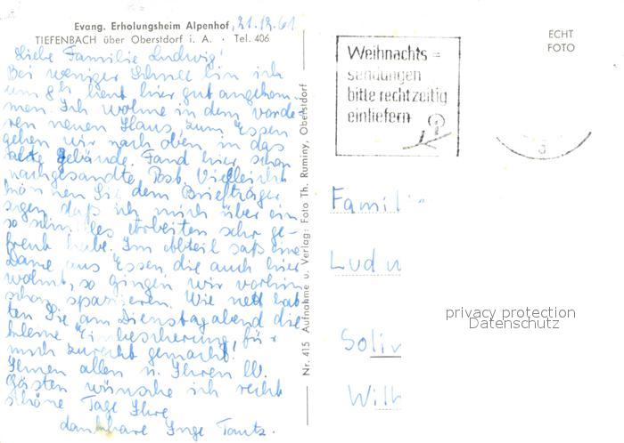 73105070 alte Postkarte Tiefenbach Oberstdorf Evangelisches Erholungsheim Alpenhof postalisch gelaufen Erhaltung siehe scans [KathaD81] KatCode: 11110009780133