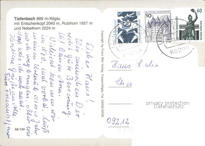 72567605 alte Postkarte Tiefenbach Oberstdorf Fliegeraufnahme mit Entschenkopf Rubihorn Nebelhorn postalisch gelaufen Erhaltung siehe scans [LiesaD40] KatCode: 11110009780133