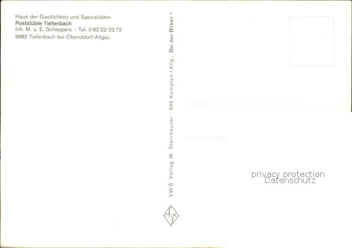72467121 Tiefenbach Oberstdorf Gaststaette Poststueble postalisch nicht gelaufen Erhaltung siehe scans KatCode: 11110009780133