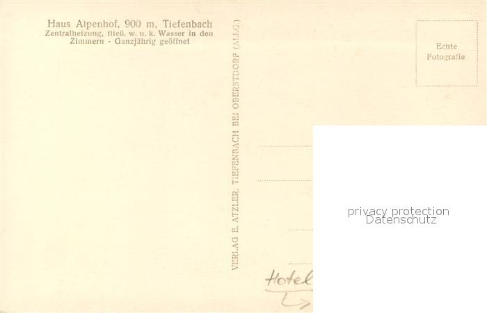 73710617 Tiefenbach Oberstdorf Haus Alpenhof postalisch nicht gelaufen Erhaltung siehe scans [WerneD78] KatCode: 11110009780133