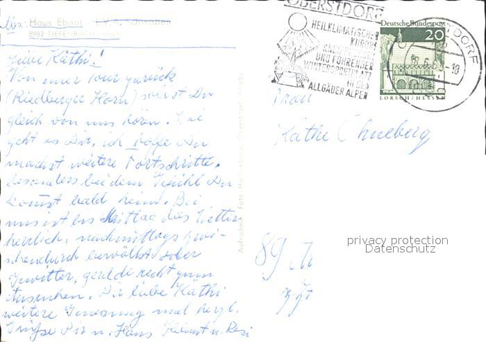 72313364 alte Postkarte Tiefenbach Oberstdorf Haus Ebnat postalisch gelaufen Erhaltung siehe scans KatCode: 11110009780133