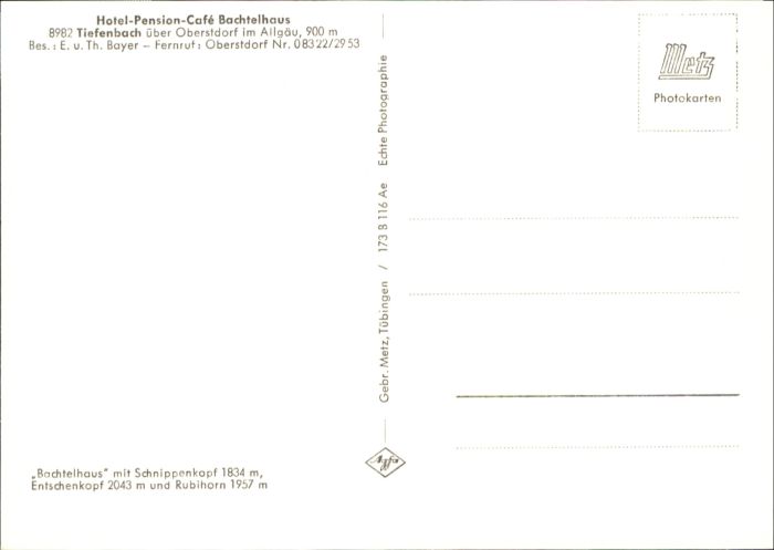 40807151 Tiefenbach Oberstdorf Hotel Pension Cafe Bachtelhaus Allgäu KatCode 11110009780133