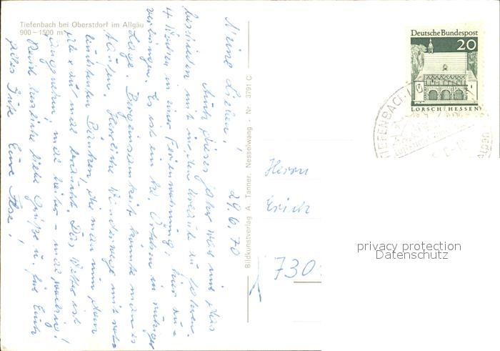 alte Postkarte Tiefenbach Oberstdorf Kirche postalisch gelaufen Erhaltung siehe scans