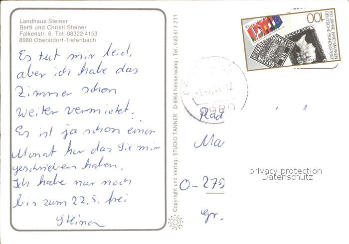 72476622 alte Postkarte Tiefenbach Oberstdorf Landhaus Steiner Breitachklamm Panorama Huette postalisch gelaufen Erhaltung siehe scans KatCode: 11110009780133