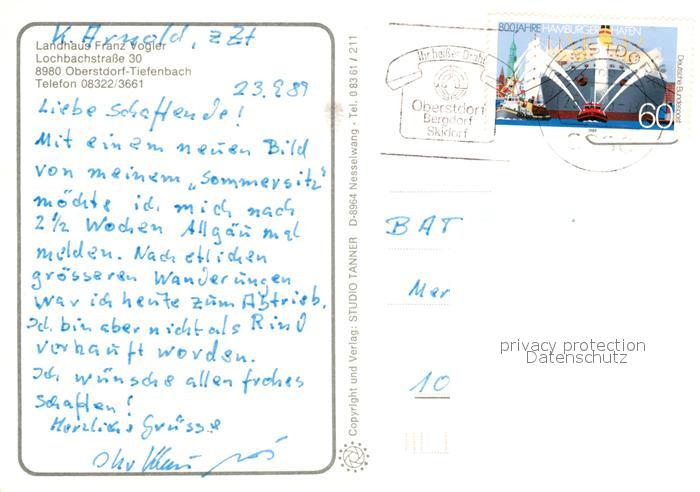 73086878 alte Postkarte Tiefenbach Oberstdorf Landhaus Vogler postalisch gelaufen Erhaltung siehe scans [KathaD81] KatCode: 11110009780133