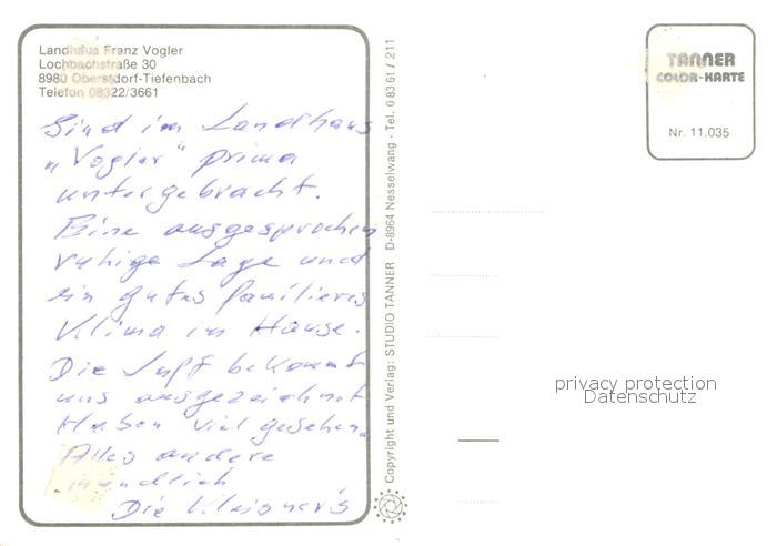 73007174 Tiefenbach Oberstdorf Landhaus Vogler Gaststube postalisch nicht gelaufen Erhaltung siehe scans [WerneD78] KatCode: 11110009780133