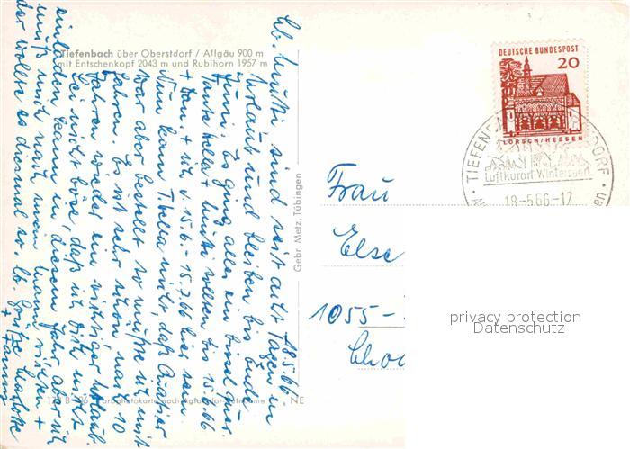 72725868 alte Postkarte Tiefenbach Oberstdorf mit Entschenkopf und Rubihorn postalisch gelaufen Erhaltung siehe scans [WerneD78] KatCode: 11110009780133