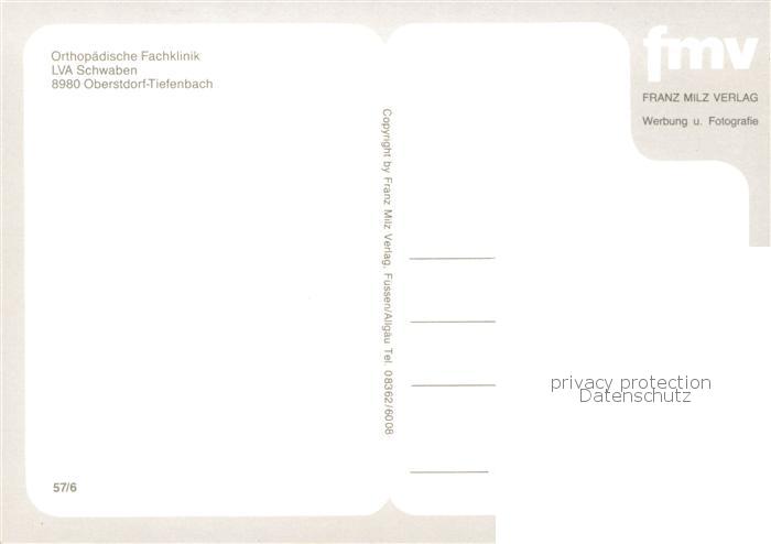 73841070 Tiefenbach Oberstdorf Orthopaed Fachklinik LVA Schwaben postalisch nicht gelaufen Erhaltung siehe scans [WerneD78] KatCode: 11110009780133