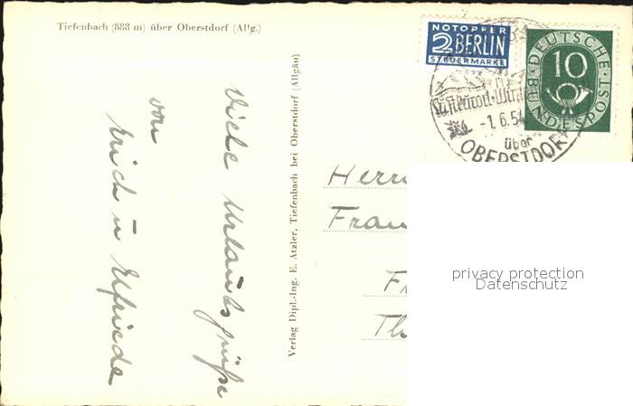 72591670 alte Postkarte Tiefenbach Oberstdorf Panorama Ortsblick Breitachklamm Ferlewang mit Gaisberg Rohrmoos postalisch gelaufen Erhaltung siehe scans [WerneD78] KatCode: 11110009780133