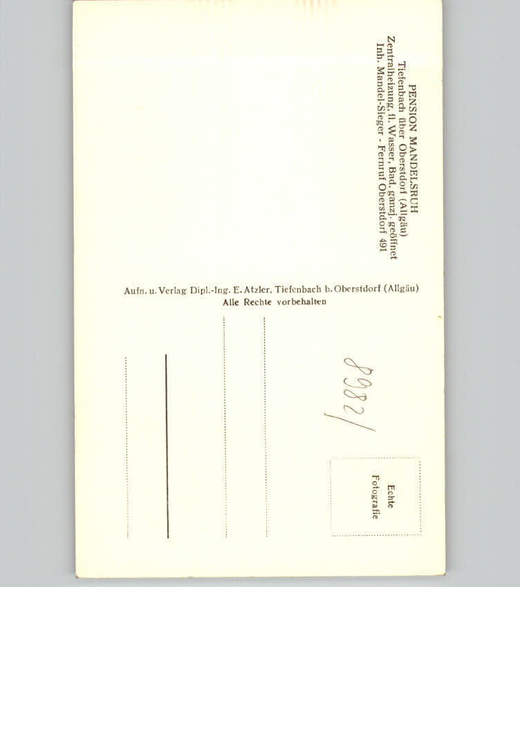 31174381 Tiefenbach Oberstdorf Pension Mandelsruh postalisch nicht gelaufen KatCode: 11110009780133