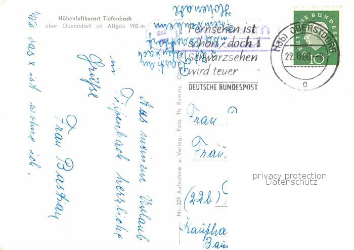 72898702 alte Postkarte Tiefenbach Oberstdorf postalisch gelaufen Erhaltung siehe scans [PaolaD17] KatCode: 11110009780133