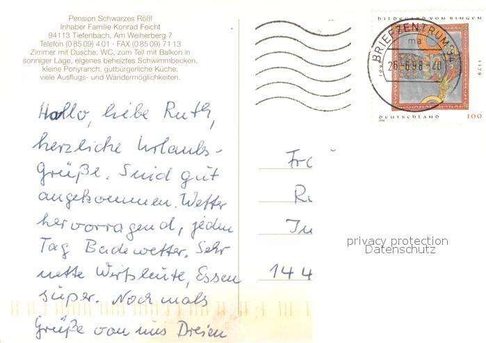 73650953 alte Postkarte Tiefenbach Passau Fliegeraufnahme Pension Schwarzes Roessl Gaststube Zimmer postalisch gelaufen Erhaltung siehe scans [WerneD78] KatCode: 11110009275151