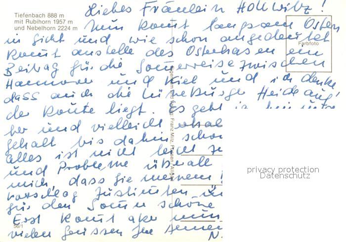 73177041 Tiefenbach Passau Rubihorn Nebelhorn postalisch nicht gelaufen Erhaltung siehe scans [NatalD47] KatCode: 11110009275151