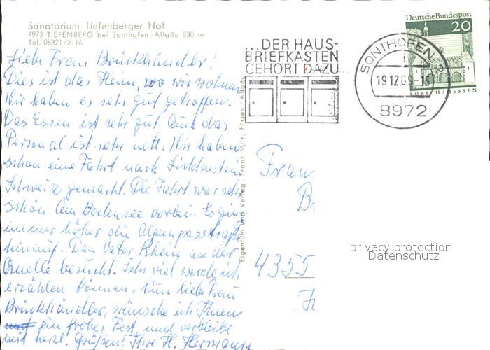 72251380 alte Postkarte Tiefenberg Sanatorium Tiefenberger Hof postalisch gelaufen Erhaltung siehe scans KatCode: 11110009780134