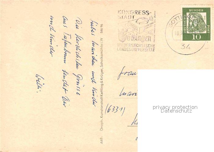 72902734 alte Postkarte Tiefenbrunn Goettingen Schwanenteich Kurgarten Kurhaus postalisch gelaufen Erhaltung siehe scans [AndreD76] KatCode: 11110003152021