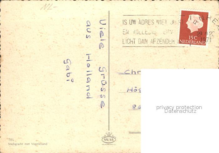 old postcard Tiel Stadsgracht met Vogeleiland postalisch gelaufen Erhaltung siehe scans