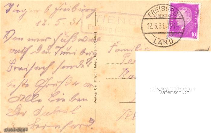 33275526 alte Postkarte Tiengen Breisgau Kirche Schule postalisch gelaufen Erhaltung siehe scans [NatalD47] KatCode: 11110008311000
