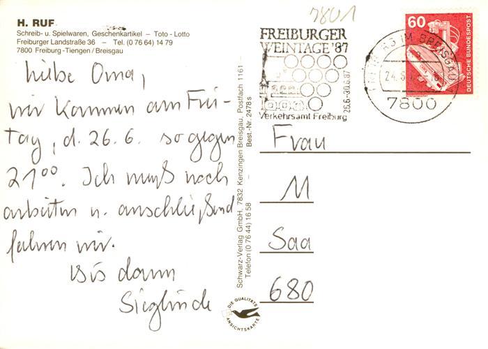 73932939 alte Postkarte Tiengen Freiburg Breisgau Panorama Hauptstrasse Huegelhaeuser Rathaus Alte Weinpresse postalisch gelaufen Erhaltung siehe scans [WerneD78] KatCode: 11110008311000