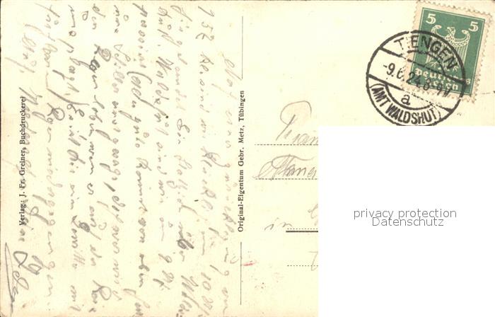 31714883 alte Postkarte Tiengen Waldshut postalisch gelaufen Erhaltung siehe scans KatCode: 11110008337126
