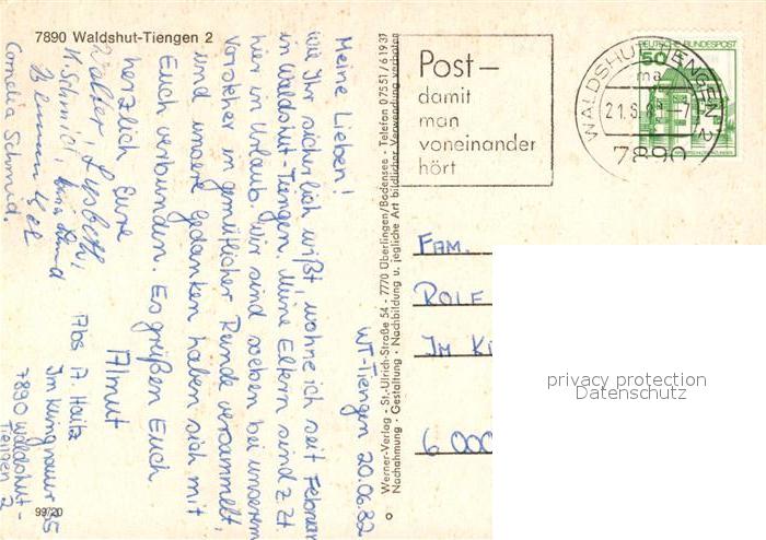 73232575 alte Postkarte Tiengen Waldshut Brunnen Aussichtsturm Stadtansichten postalisch gelaufen Erhaltung siehe scans [KathaD81] KatCode: 11110008337126