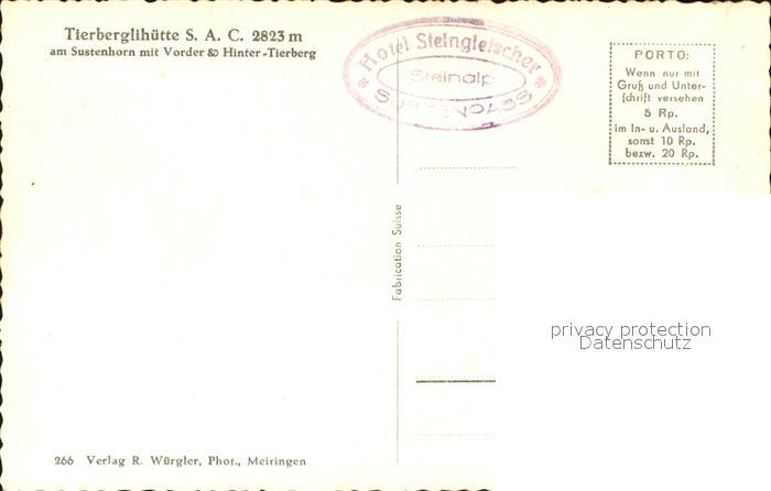 11853260 Tierberghuette am Sustenhorn mit Vorder und Hintertierberg postalisch nicht gelaufen Erhaltung siehe scans KatCode: 11470060210588