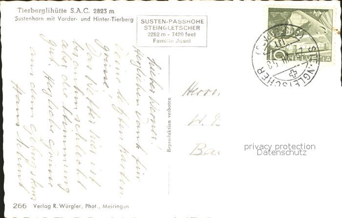 11853279 alte Postkarte Tierberghuette Sustenhorn Vorder und Hinter Tierberg postalisch gelaufen Erhaltung siehe scans KatCode: 11470060210588