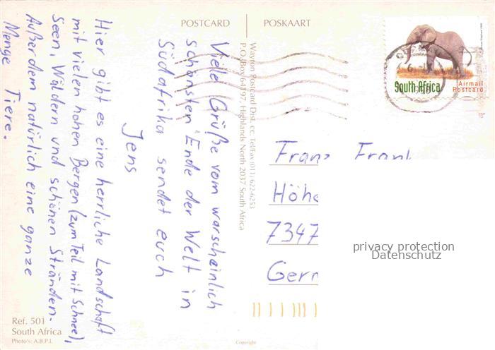74023269 alte Postkarte TIERE Animals Animaux Animales Animali– Loewen Elafanten South Africa postalisch gelaufen Erhaltung siehe scans [SanaeD93] KatCode: 22540000000000