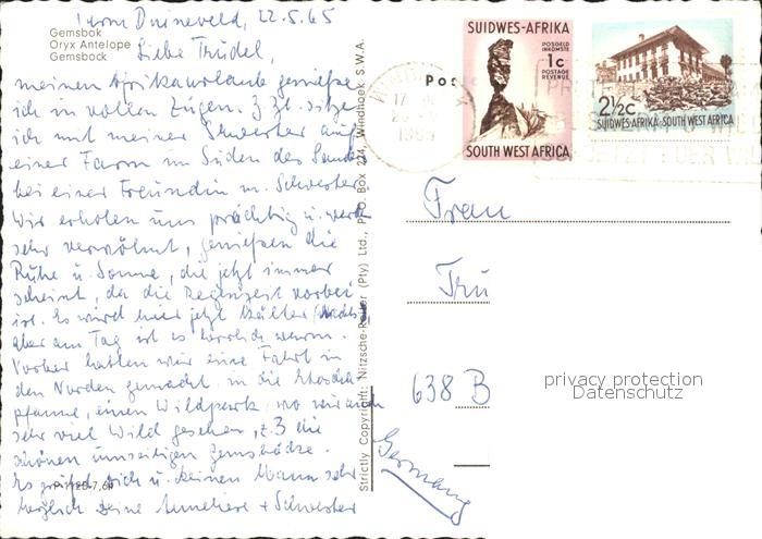 alte Postkarte Tiere Gemsbock Oryx Antelope postalisch gelaufen Erhaltung siehe scans
