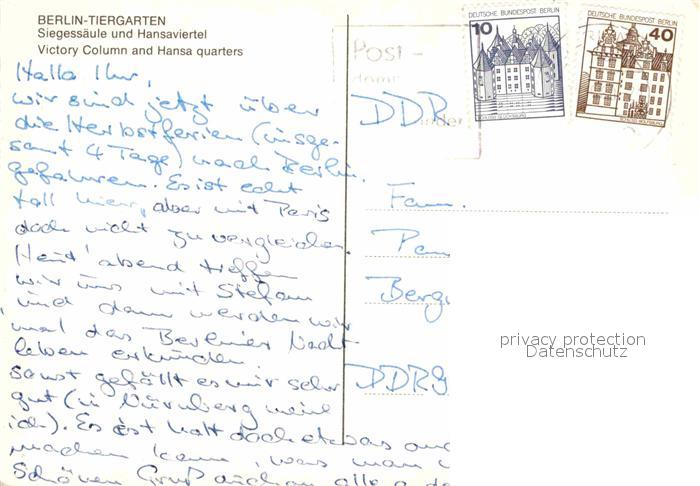 72652036 alte Postkarte Tiergarten Berlin Siegessaeule und Hansaviertel Fliegeraufnahme postalisch gelaufen Erhaltung siehe scans [FriedD77] KatCode: 11110011000000