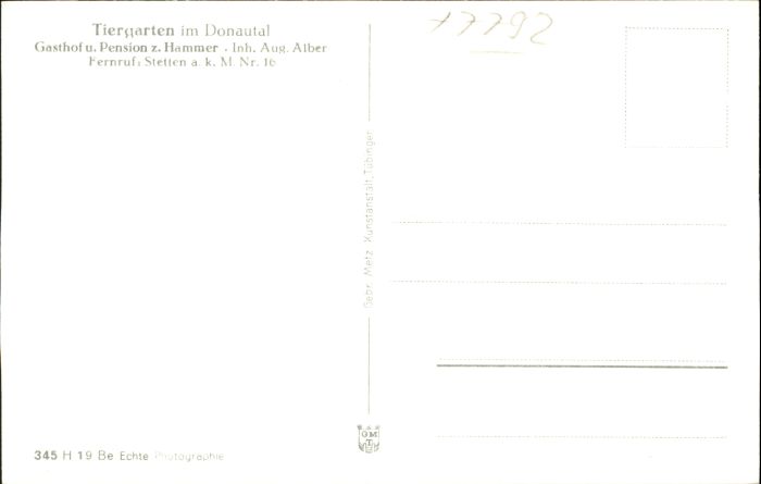 40805545 Tiergarten Donautal Stetten kalten Markt Gasthof Pension zum Hammer postalisch nicht gelaufen Alte Ansichtskarte Postkarte Katcode 11110008317089