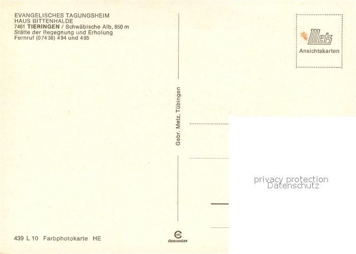 73643529 Tieringen Ev Tagungsheim Haus Bittenhalde postalisch nicht gelaufen Erhaltung siehe scans [WerneD78] KatCode: 11110008417044