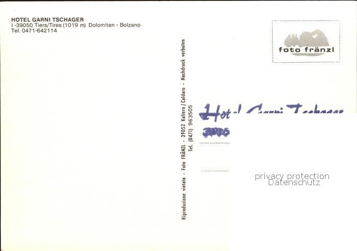 Tiers Tires Hotel Garni Tschager postalisch nicht gelaufen Erhaltung siehe scans [LiesaD40]