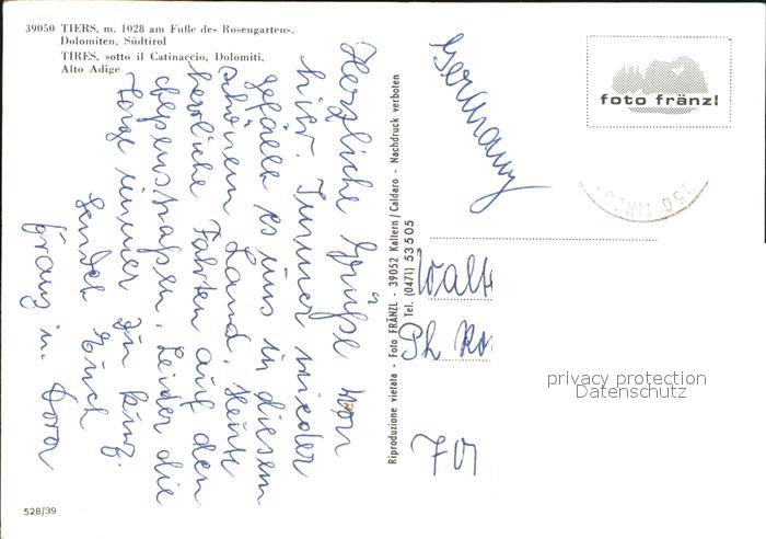 old postcard Tiers Tires mit Rosengarten postalisch gelaufen Erhaltung siehe scans [WerneD78 kv016box]