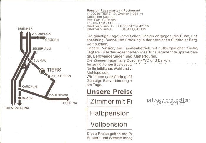 Tiers Tires Pension Rosengarten postalisch nicht gelaufen Werbekarte (keine Postkarte) Erhaltung siehe scans