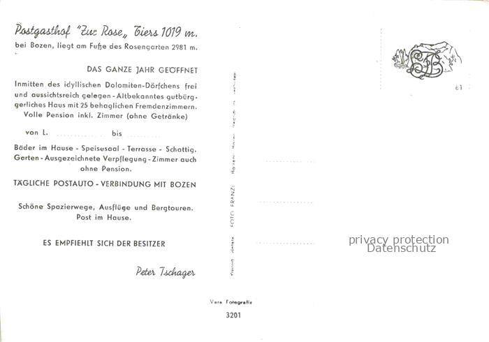 74075340 Tiers Tires Rosengarten Trento IT Postgasthof Zur Rose postalisch nicht gelaufen Erhaltung siehe scans [WerneD78] KatCode: 11240