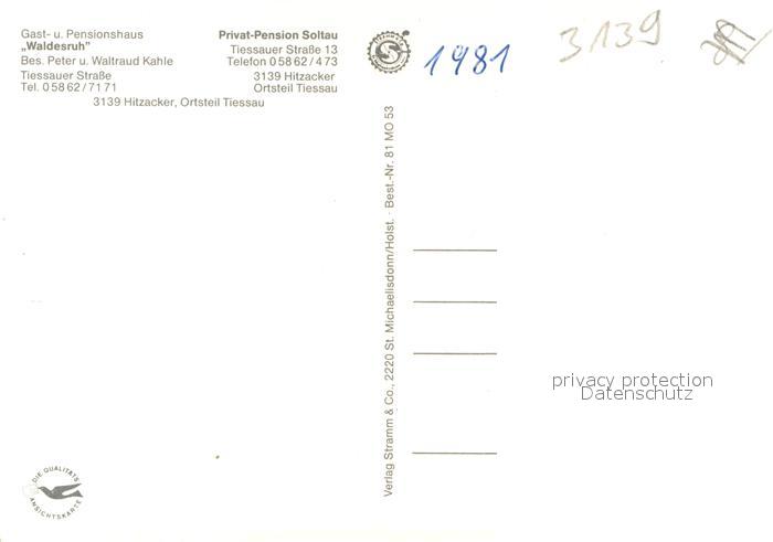 73672619 Tiessau Gasthaus Pension Waldesruh Pension Soltau Landschaftspanorama Partie an der Elbe postalisch nicht gelaufen Erhaltung siehe scans [FriedD77] KatCode: 11110003354009