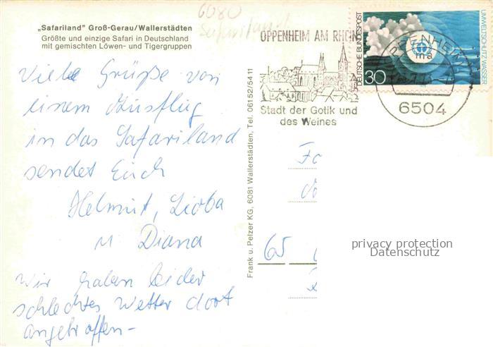 74041244 alte Postkarte Tiger Tigre– Safariland Gross Gerau Wallerstaedten postalisch gelaufen Erhaltung siehe scans [SanaeD93] KatCode: 22540000000000